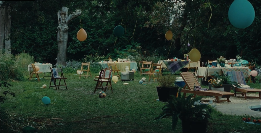 当丧妻往事与围绕Nina的谜团(画作确由女孩Nina独自完成)纷纷清晰后,原本隐藏在浅蓝色画面之下的深色阴影被放大,有狂风席卷着树叶从Mihail身侧而过,眩晕的视角效果从阴影的低语变为一种呼唤,Mihail对故乡与旧处的访顾从此刻变成漫游,现实与记忆融合而模糊,最终使这个离家太久的孤独又怯懦的男人涌起重新面对留在旧地的往事与亲人的勇气。