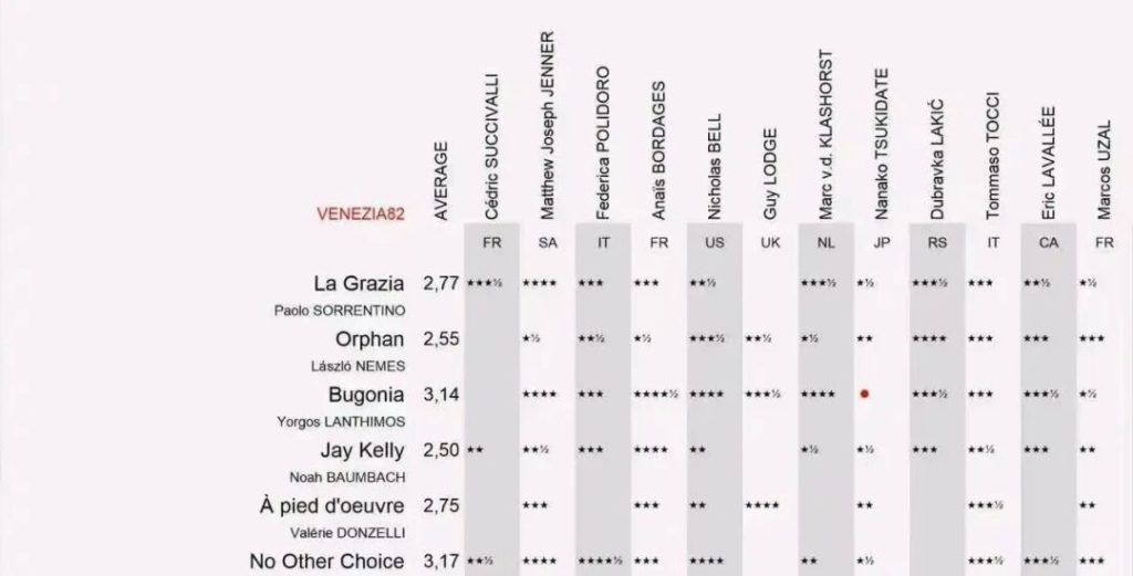 今天是威尼斯电影节第四天,主竞赛已经首映了六部,其中最受好评的是朴赞郁的《无可奈何》和兰西莫斯的有独特世界观,改编自韩国电影的《拯救地球》。其他的主竞赛电影褒贬不一,尤其是《影星杰·凯利》的口碑大跌眼镜。这部之前大家一直看好被提名奥斯卡的电影,现在已经跌至谷底。同样是颁奖季大热的瓜导非竞赛电影《猎杀之后》,也因为讨论敏感话题过多而成一团乱麻,结果烂番茄以及Metacritic评分都很低,没有达到预期的好评结果。
